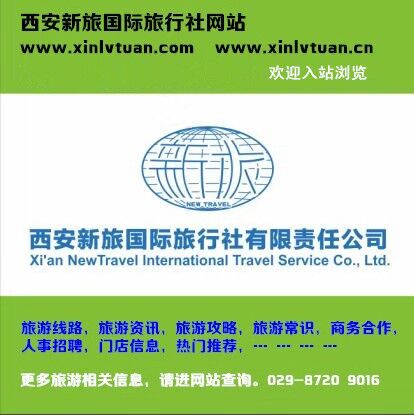 4、口碑良好,信誉保证。西安新旅国际旅行社是中国旅行社协会会员单位,陕西省《质量诚信重点推荐单位》和《陕西省AAA级信誉单位》,西安市旅游局推荐的《旅行社责任保险全国统保示范项目参保单位》。在国内外游客中和旅游业中有良好的认同感和好评,在国际上建立了良好的口碑和信誉!