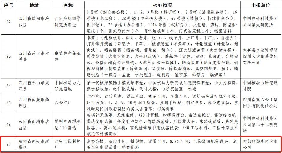 西安电影制片厂和陕西西凤酒厂2处遗址入选