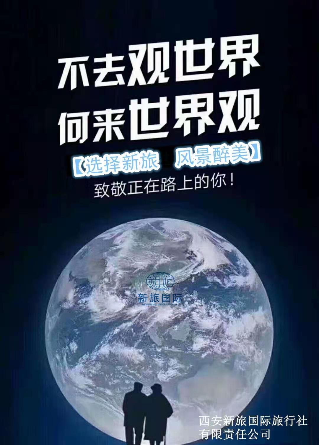 我们坚持遵循:以质量求生存、以创新求发展、以市场为导向、以服务为宗旨的经营理念,为游客提供全方位、多元化、高层次的服务。 感谢各位对西安新旅国际旅行社的支持!