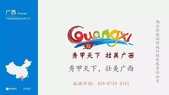 桂林漓江、灵渠、北海银滩、涠洲岛、德天瀑布、桂平西山