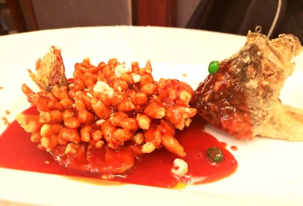 松鼠桂鱼,又名松鼠鳜鱼,是苏帮菜中的传统名菜。这道菜成菜后,形如松鼠、外脆里嫩、色泽橘黄,酸甜适口,并有松红香味。