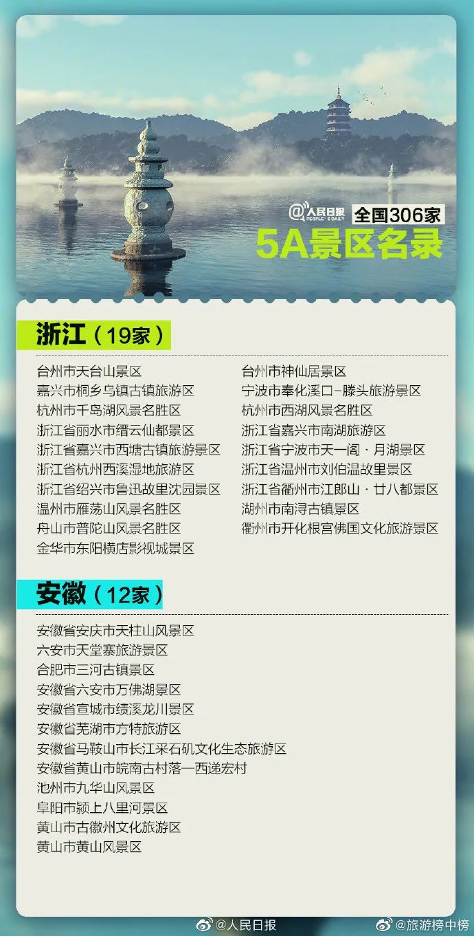 截至目前(2022年7月7日),国家文旅部已确定了306家国家5A级旅游景区。