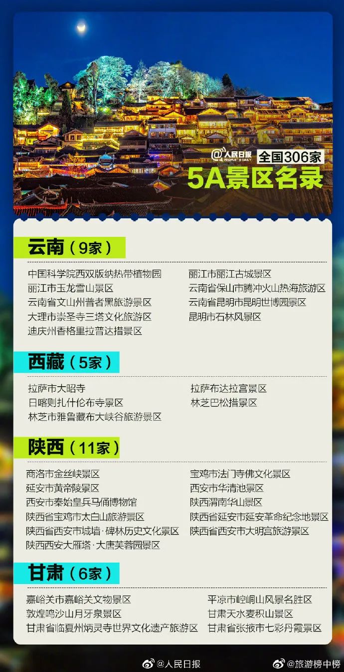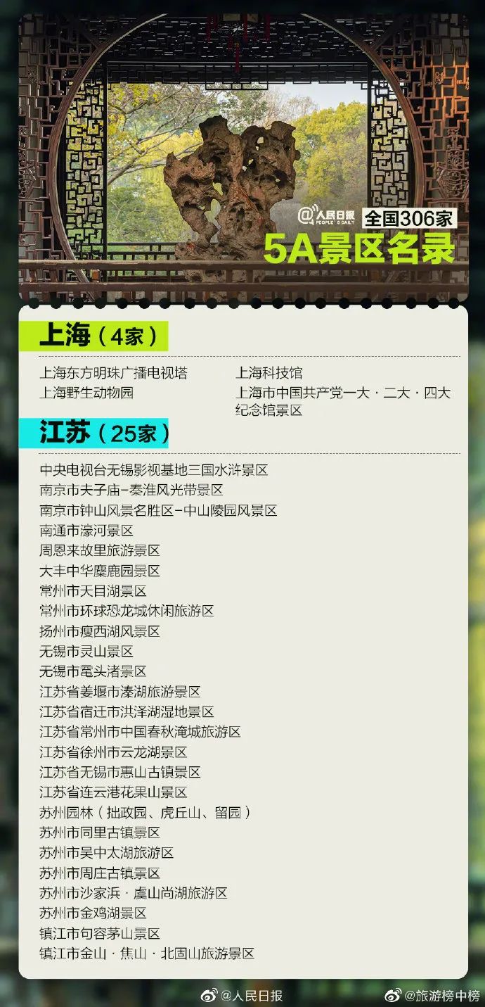 截至目前(2022年7月7日),国家文旅部已确定了306家国家5A级旅游景区。