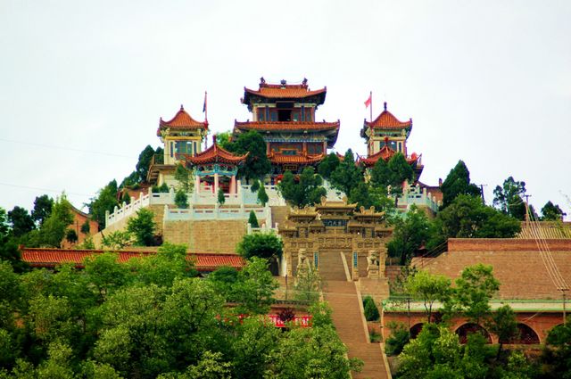 富县太和山久负盛名,原名凤凰山,发源于白云山山脉,自北向南蜿蜒数仟里伸展到富县城北。太和山山势陡峭,气势雄伟。山之左右两侧,极对称的伸出两座侧峰,犹如两条苍龙,与挺拔浑圆的太和山山峰形成二龙戏珠之势,山下五条河流、五条道路在山前穿梭而过,形成五水、五路相交之势,富县古称“五交城”,即得名于此。更有趣的是,站在山顶俯瞰,周围东山、西山、柏山、骆驼山四座山的山峰不但低而且皆面朝太和山,形成四山朝拜的景象。