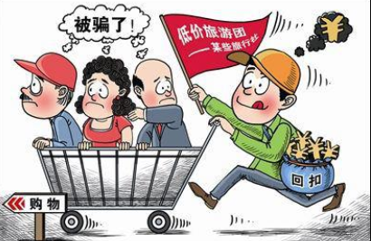 旅行社以极低的价格或者“零团费”吸引游客,进而在旅游活动中以强迫购物、“人头费”、返点等形式获利。