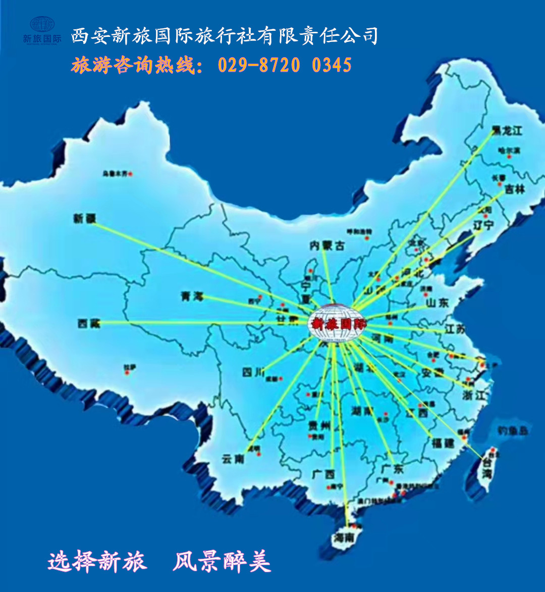 【西安新旅国际旅行社有限责任公司】竭诚为您提供以下服务:陕西省内旅游、国内旅游以及国际接待旅游产品;定制红色旅游、研学旅游;乡村振兴农业考察旅游、企事业单位团建游;提供自助旅游、团队旅游线路策划设定;提供酒店预订、旅游包车、导游委派等;代定机票、火车票、大巴、轮船等各种交通票务;承办各种会议、展览、专业团体考察、学术交流、商务活动等。我们将随时欢迎您的光临指导。
