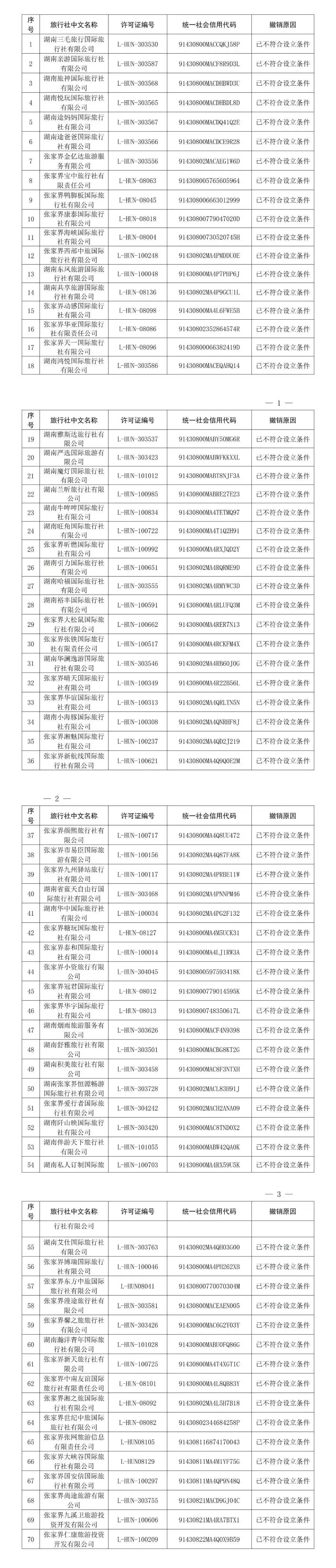 ◎湖南张家界70家旅行社被撤销许可证!