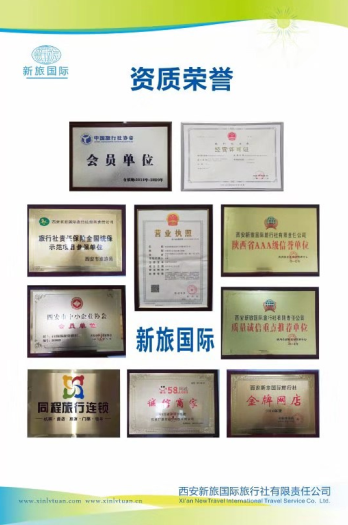 先后被陕西省企业质量管理中心评为《质量诚信重点推荐单位》和《陕西省AAA级信誉单位》,是西安市旅游局推荐的《旅行社责任保险全国统保示范项目参保单位》。是中国旅行社协会会员单位以及西安市中小企业协会会员单位。被多家景区评为诚信合作单位,是58同城的诚信商家,启程旅游网的金牌网店,欣欣旅游网的金牌网店,同城旅游网的同城旅行连锁机构等。