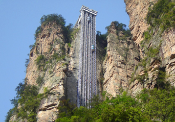 ★6、世界第一露天观光电梯——百龙天梯上下。