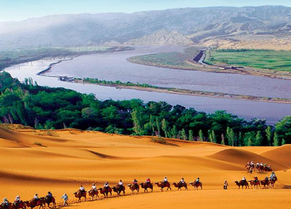 D1 早飞机前往-中卫,接机后入住酒店,后游览3A通湖草原(游览1小时20分钟)旅游区,其景区汇集了沙漠、盐湖、湿地、草原、沙泉、绿洲、牧村等多种自然人文景观,被中外游客喻为沙漠中的“伊甸园”。后游览“世界垄断性旅游”资源的5A沙坡头及腾格里大沙漠风景区(游览3小时30分),位于中国四大沙漠之一的腾格里沙漠东南边缘,黄河从旁穿过,风景秀美。古老的黄河野马般奔腾着穿山越谷,经黑山峡一个急转弯流入宁夏中卫境内。这一个急转弯,使黄河一改往日的汹涌,像一位文静秀美的少女,平静缓流;这一个急转弯,造就了一个神奇的自然景观——沙坡头。黄河、大漠、沙山,胜景如画,融自然景观、人文景观于一体,被世人称之为“世界沙都”。可自行参加沙漠游乐项目:滑沙,飞越黄河滑索、黄河羊皮筏子、还有巨大的沙雕群、沙漠骆驼、沙漠越野车、卡丁车等游乐项目,之后集合乘车约3小时后抵银川。晚银川自由活动自费品尝银川小吃。