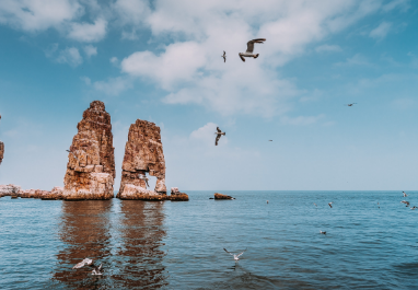 这里是威千公里幸福海岸线的起点,祝福人们在这里开启幸福之门,踏上幸福岸线,沐浴在幸福的海洋里。后乘车赴荣成。荣成市位于山东半岛最东端,这里风光旖旎、冬暖夏凉、春温秋爽,海洋资源极其丰富,是一座美丽的滨海城市。约1小时车程。赠送游览5A级风景区【成山头】(门票已含):是中国大陆伸向海洋的最东端,古时被称之为“天尽头”, 2005年被《中国国家地理》评为“中国最美的八大海岸”大陆第一名。游览【好运角景区】景区独具特色,三面环海,一面接陆,海天一色,风景极其壮美,与韩国隔海相望,是中国最早看见海上日出的地方,自古就被誉为"太阳启升的地方",后历代帝王均有幸成山拜日神之举,这里是名副其实的金乌之巢、太阳之家,远观海驴岛,天鹅湖,宛如仙境,让人流连忘返。而后参观【福如东海文化区】景区自然地貌宛如一只浮在海上的巨大葫芦,寓意“福禄双全”。 景区内风光独特,建筑风格迥异,山水相映,群芳争艳,岛湖相连,鱼跃鸥翔,人们在此既可以燃香祈福,又可荡浆戏水,也可赶海拾趣,还可以品尝海珍、抒发情怀,在碧海蓝天之间畅游,在乐中领略“福”的真谛,置身其中,陶然于世外!随后入住倪氏海泰度假酒店,酒店毗邻海水浴场,依山环海,环境优美。整个酒店建筑融于大海、沙滩、松林、湖泊之中。