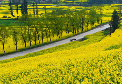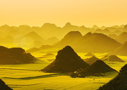 早餐后乘车前往罗平(1.5小时)。【罗平万亩油菜花】每年春季二、三月间盛开在罗平坝子里喀斯特峰丛中的油菜花海,更是充分展现了自然天成的独特魅力。每年春节前后,罗平坝子便成为了油菜花的海洋。80万亩连片的油菜花漾着春日的清香,奏着丰收的欢歌,使得整个的罗平县城都包裹在了花海之中。金鸡峰是观花海的最佳处之一,站在金鸡山上,只见漫山遍野的油菜花铺天盖地,秀峰、村舍、道路、溪流……世间一切尽数融入花之海洋,黄花绿叶交相辉映,色彩鲜亮明快,更有金梭般的阳光在花海上梳过,泛起黄金的光泽,令人心跳不已。凡驻足这个最大的天然花园内,无不感叹罗平是“金玉满堂”之乡。